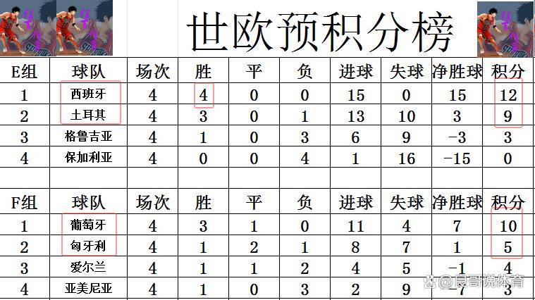 首先将目光聚焦于E组。西班牙队主场火力全开,以4:0的比分横扫保加利亚,延续着连胜的强势表现。然而,土耳其队也毫不示弱,在主场以4:1轻取格鲁吉亚,紧追不舍。西班牙队虽然以3分的优势领跑,但尚未能提前锁定出线资格,小组第一的争夺依然充满悬念。