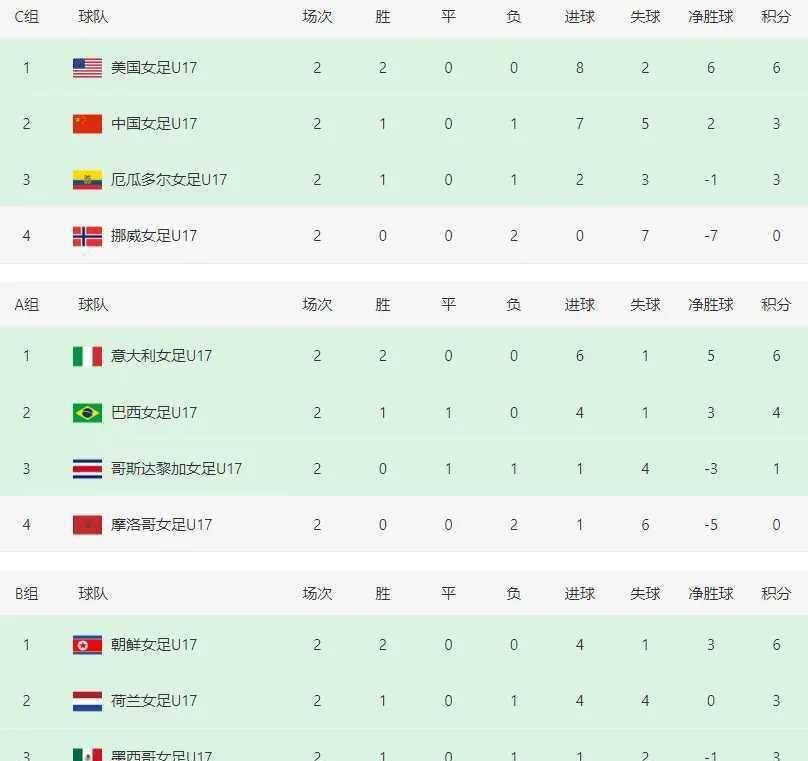 现在C组的积分榜像个精密的数学公式:美国6分提前晋级,中国和厄瓜多尔同积3分,挪威0分垫底。