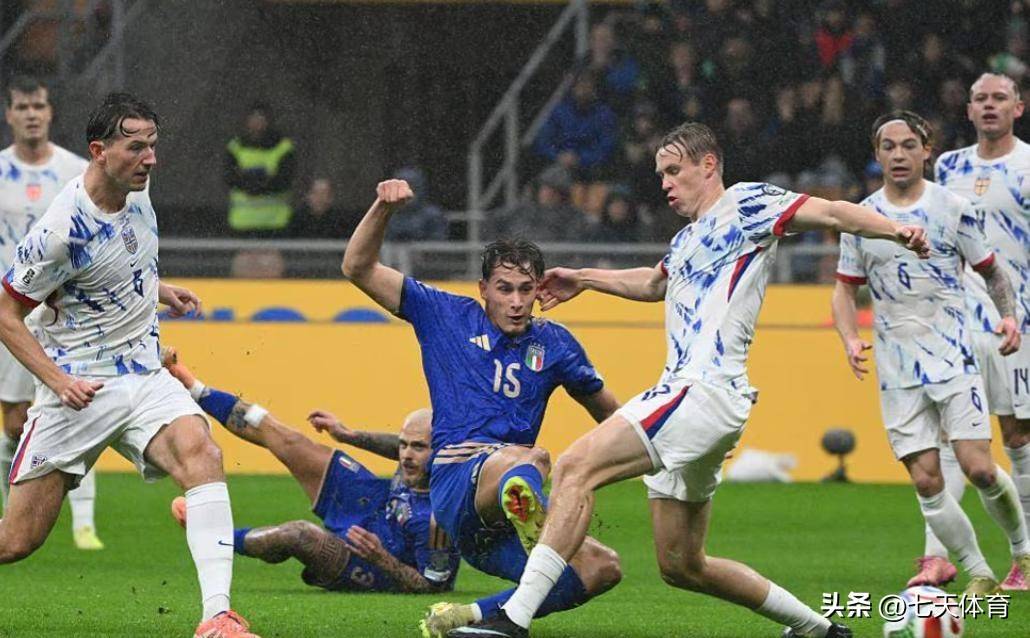 另一场焦点战是意大利对阵挪威。赛前,挪威在积分上领先意大利3分,这场比赛对双方都至关重要。开场仅11分钟,意大利就率先破门,但挪威迅速恢复节奏,下半场展开猛烈反击,一口气打入四球,其中哈兰德独中两元,最终4比1完成逆转,不仅实现对意大利的双杀,还以小组全胜的战绩稳居榜首,展现出强大的实力与韧性。