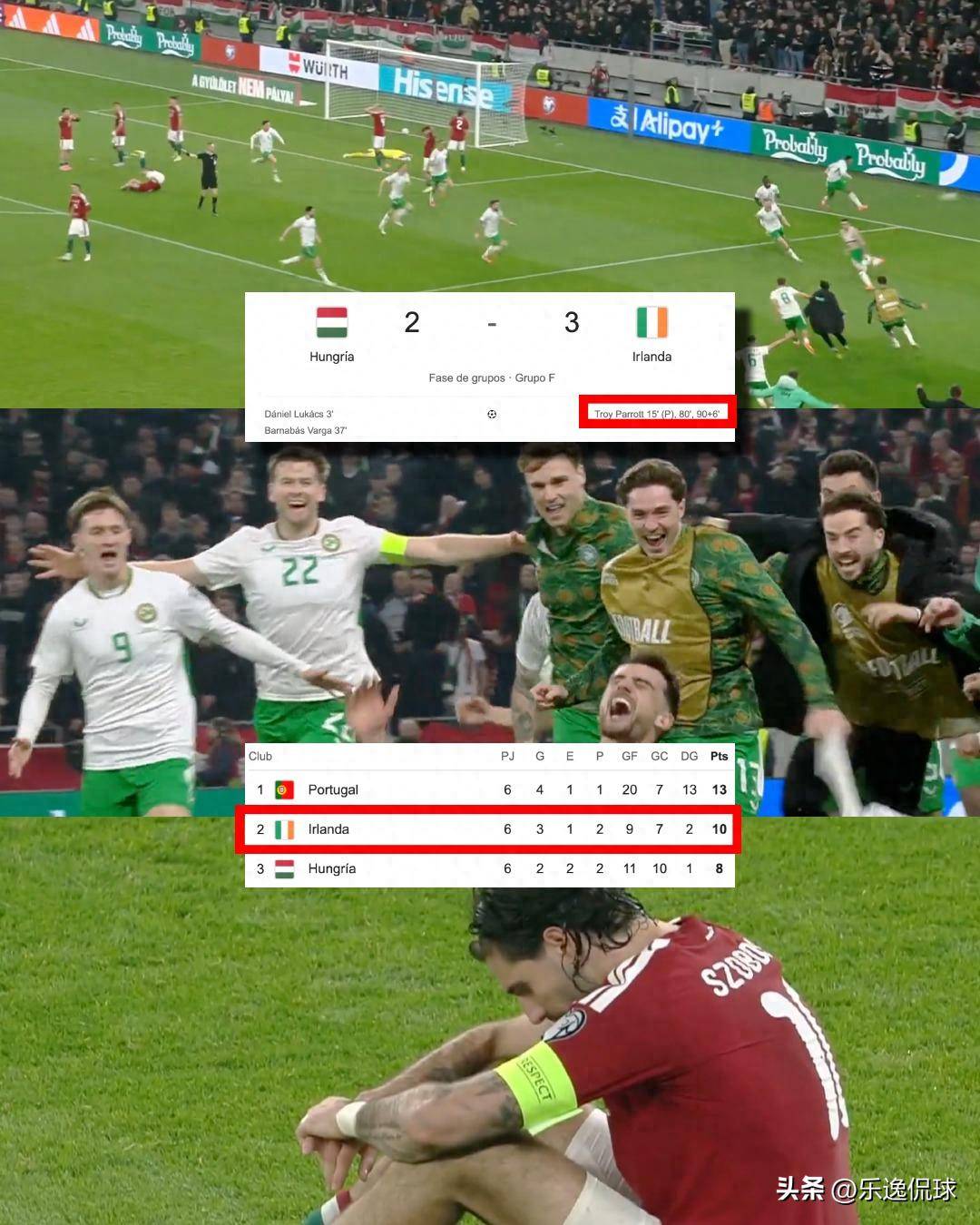 他先是敏锐地抓住匈牙利队防守中的漏洞,冷静推射扳平比分。紧接着,他又在门前展现出极强的抢点意识,梅开二度,帮助球队反超。当比赛进入到伤停补时的最后一刻,帕罗特接队友精准传中,头球破门,完成了帽子戏法,同时也用一记读秒绝杀,彻底击碎了匈牙利队的世界杯梦想。整场比赛,帕罗特成为了爱尔兰队的绝对英雄,而这仅仅是他11月份两场世预赛中的第五粒进球。要知道,在之前的比赛中,正是凭借他的梅开二度,爱尔兰队爆冷以2-0击败了强大的葡萄牙队。