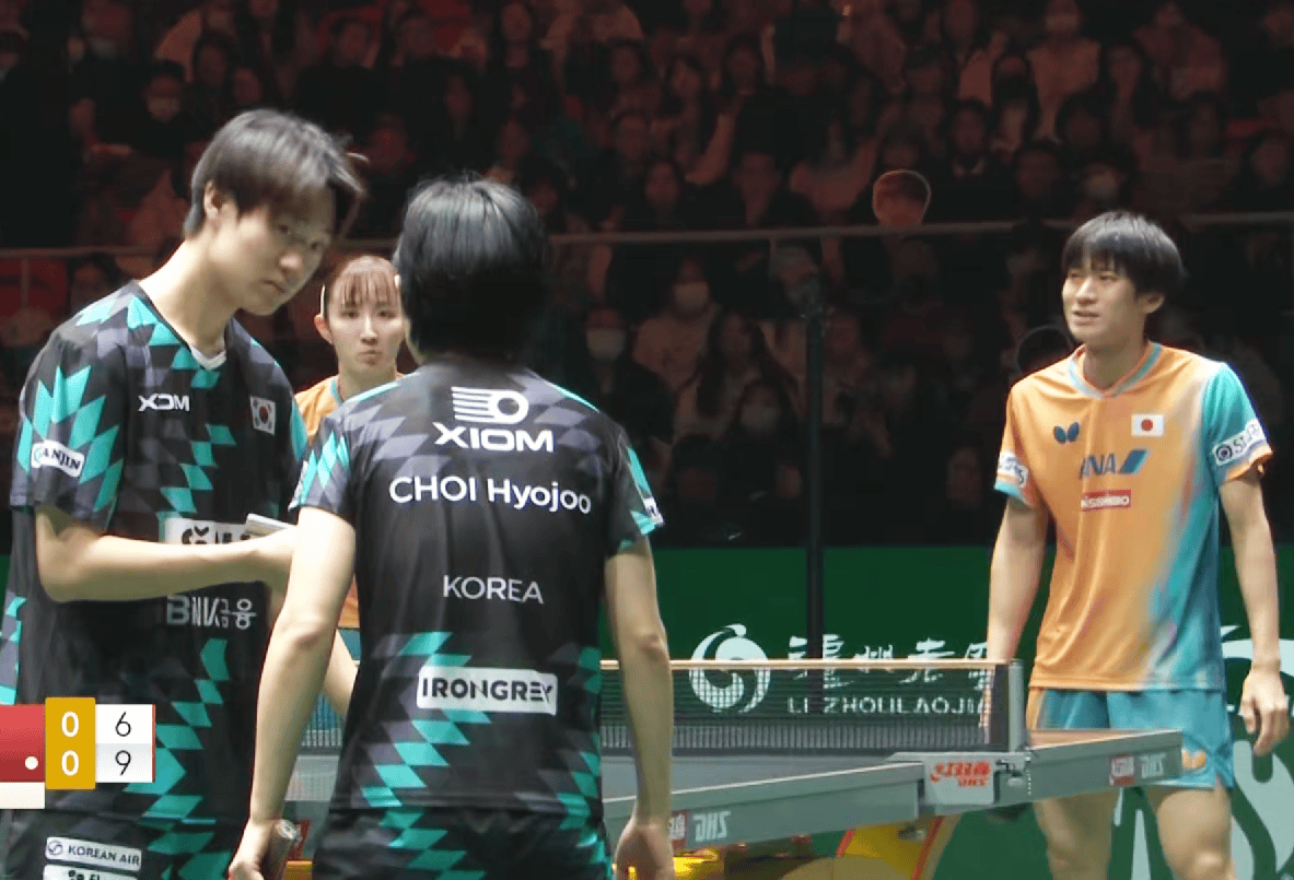 首盘混双韩国放弃此前一直出战的朴康贤/金娜英,而是改派吴晙诚/崔孝珠承担重任,两人的表现也可圈可点,在面对两位日本名将时先下一城,但最终还是户上隼辅/早田希娜技高一筹以2-1实现逆转,紧接着第二盘女单张本美和明显强于李恩惠,不过也未能零封对手,同样以2-1取胜。
